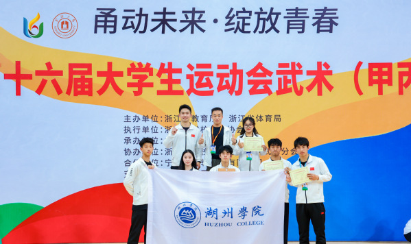 5月11日-14日,浙江省十六届大学生运动会武术(甲、丙组)比赛在宁波大学圆满闭幕。学校社会体育指导与管理专业学生郑海波荣获男子丙组自选枪术第五名,王欣欣荣获女子丙组自选剑术第六名,董必豪被评为优秀运动员。