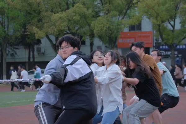 “最自己”系列活动包括拔河、集体跳长绳、颠羽毛球、点投篮球、踢毽子等。活动以班级为单位,自主报名,全员参与,学生从自身兴趣出发,发挥所长,在各项活动中,表现出了极大的参与热情和集体荣誉感。赛场上,参加者奋力拼搏;赛场下,同伴们呐喊助威,加油声此起彼伏,真正地赛在其中,动在其中,乐在其中。
