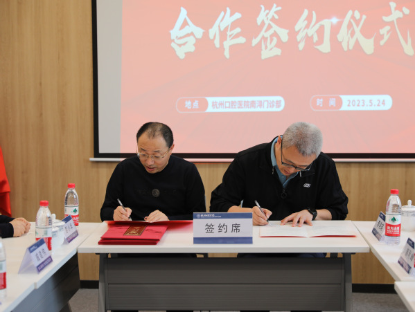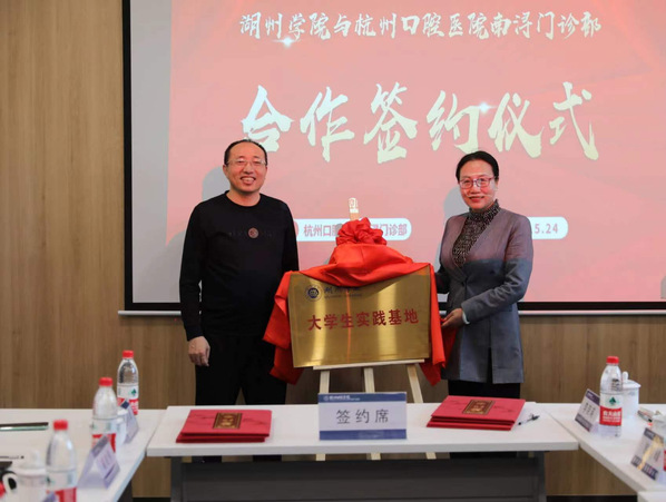 5月24日,437437必赢国际网址与杭州口腔医院南浔分院举行校外实践基地签约授牌仪式。杭州口腔医院南浔分院院长马旭东等相关领导班子,437437必赢国际网址副校长李祖欣,学校办公室、教务处、生命健康学院负责人及相关人员出席仪式。