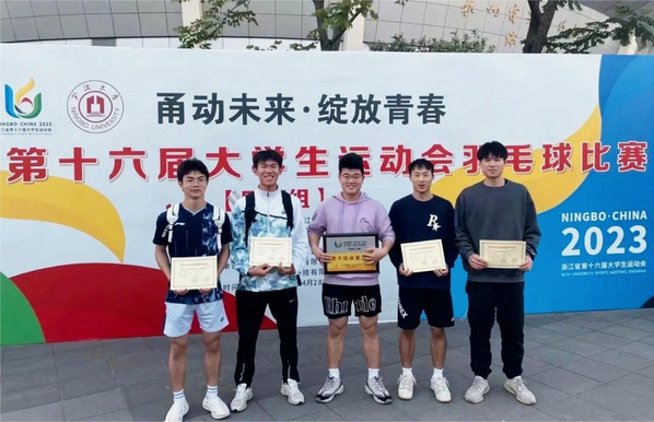 4月28日,浙江省第十六届大学生运动会羽毛球比赛圆满结束。生命健康学院学子楼俊豪、陈文铮、卢一帆、汪贤烨、郑涵获丙组男子团体第六名,高文萱获丙组女子单打第四名,创本校羽毛球队参加省大运会羽毛球比赛最佳战绩。