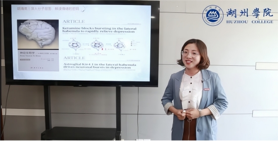 “爬最高的山,看最美的风景”,生命健康学院刘敏老师,以浙江大学胡海岚教授团队研发出全新抗抑郁机制,为全球3.5亿抑郁症患者破解情绪“密码”为切入点,讲述了湖州市“南太湖心航”十位一体心理健康服务体系的构建过程,充分展现了湖州市政府忠实践行“八八战略”,与时代同行,奋力打造卫生健康领域高质量发展建设共同富裕示范区模范样本的坚定决心。