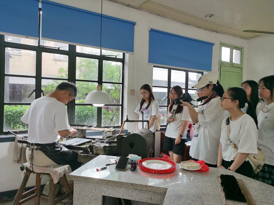 座谈会后,实践团在工作人员的带领下,前往善琏湖笔工厂,依次参观水盆、结头、择笔、刻字等十二道湖笔制作工序,切身了解善琏千年古法工艺。一支小小的湖笔书写了“一部书画史,半部在湖州”的佳话。