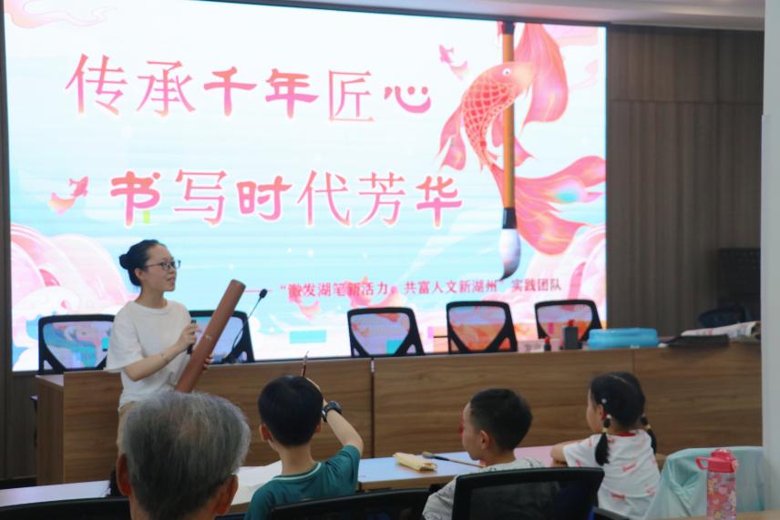 为宣传湖笔文化,讲述湖笔传承发展艰难历程中的乡村振兴新样态。7月13日,马克思主义学院“激发湖笔新活力,共富人文新湖州”实践团队来到墙壕里社区,通过湖笔朗诵、湖笔文化宣讲等活动,带领孩子们了解湖笔文化,品味书法之美,感悟乡村振兴新风采。