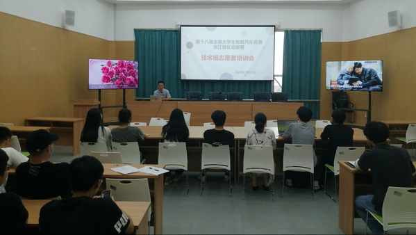 为更好地保障第十八届全国大学生智能汽车竞赛浙江赛区选拔赛顺利举行,7月17日,学校举行志愿者出征仪式暨培训会,相关部门负责人、团学辅导员、师生志愿者代表共120余人参加。