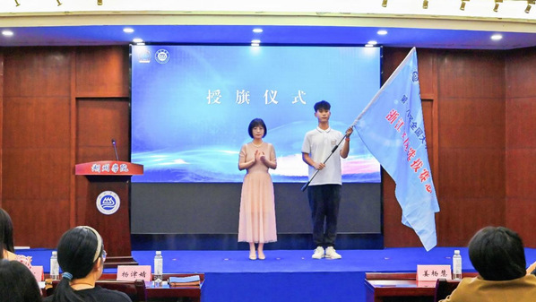 活动举行了授旗仪式,伴随着挥舞的旗帜,全体志愿者们将会以湖院人的青春热情与担当责任,完成志愿服务的光荣使命。