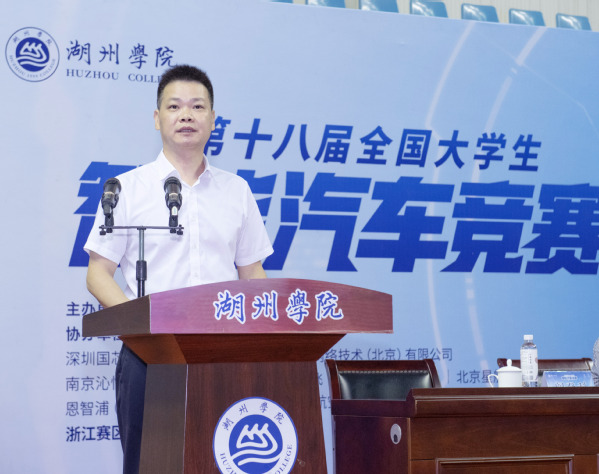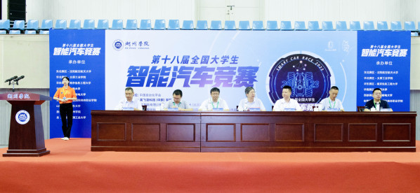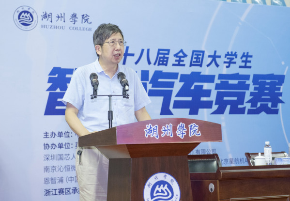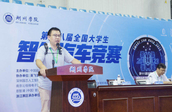 第十八届全国大学生智能汽车竞赛浙江赛区组委会副主任、浙大城市学院副校长韦巍教授宣布第十八届全国大学生智能汽车竞赛浙江赛区选拔赛正式开始。
