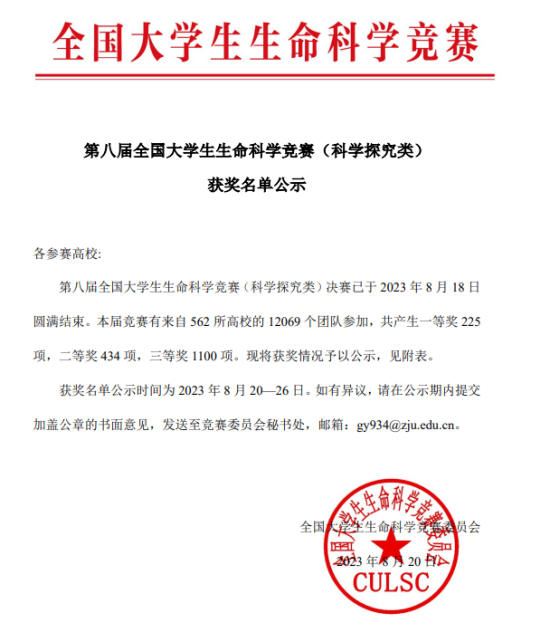 8月20日,第八届全国大学生生命科学竞赛(科学探究类)获奖名单公示,本届竞赛有来自 562 所高校的 12069 个团队参加,共产生一等奖 225 项,二等奖 434 项,三等奖 1100 项。生命健康学院刘骕骦博士、刘燕敏博士共同指导,林紫依、徐乐、李天龙、谭清蔚、何宏泰五位同学共同参与的项目《大豆GmPM31启动子参与高温高湿胁迫响应的功能分析》荣获全国三等奖,也是必赢官网学子在该赛道首次获奖。