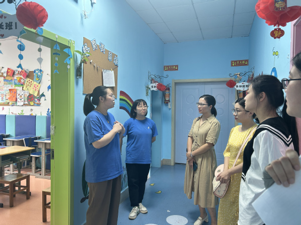 活动中,发展中心老师向志愿者们介绍了当前的班级划分、课程安排、日常生活等,并参观了康复中心的生活区,了解了中心的整体现状和中心理念。而后,学院师生来到班级与孩子们近距离接触,了解孩子们的日常生活,询问他们当下需求,以亲和的态度关心特殊儿童,让特殊儿童感受到社会的关爱与温暖。