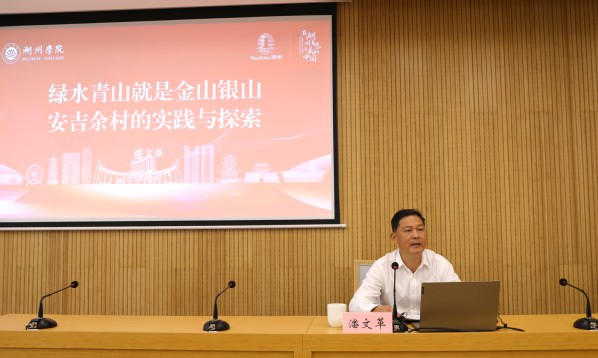 安吉县委党校校委委员、机关支部副书记,浙江省劳动模范潘文革作题为《绿水青山就是金山银山安吉余村的实践与探索》的专题辅导。