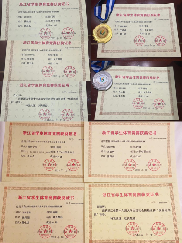 在比赛中,运动员们激情澎湃,奋力拼搏,展现了昂扬的斗志和青春的姿态,并取得了傲人的成绩。王晶晶荣获甲组女子铅球第一名,孔心如荣获丙组女子标枪第二名,吴羽昕荣获丙组女子七项全能第四名,祝健铭荣获丙组男子标枪第五名,徐馨怡荣获甲组女子跳高第五名,蔡思雨荣获丙组女子400米第六名,张凤颖荣获丙组男子跳远第七名。在团体项目中,包一帆、留雍乐、张凤颖、张成辉荣获丙组男子4*100米接力第六名。孔心如、吴羽昕被评为“优秀运动员”。李全志老师被评为优秀裁判员。