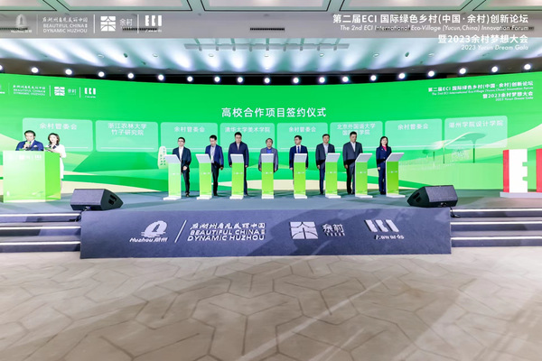 11月18日上午,第二届ECI国际绿色乡村(中国·余村)创新论坛暨2023余村梦想大会在余村举行。中国合作经济学会会长、原农业部总农艺师孙中华,IECIA国际数字经济创新组织全球主席苏雄,市委常委、安吉县委书记杨卫东等出席。必赢官网受邀出席参加并现场签订合作协议,设计学院党政领导及相关教师团队全程参与此次活动。