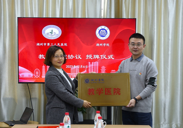 借此合作,学校和医院将优势互补、共同发展,努力打造“实践教学一体化”“实践就业一体化”的人才发展基地,携手打造新时代共同富裕的医校共同体,为湖州市域健康共同体建设贡献力量。