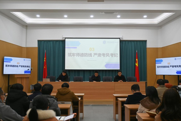 智能制造学院副书记以“筑牢师德防线,严肃考风考纪”为主题针对考前诚信教育、监考规范等方面提出了指导性意见和建议,并从考试作弊对学生产生的影响出发,强调教师要呵护、守护好学生。对于学生考试作弊的现象要提前预防,而不仅仅是事后教育。他强调,提前是关键,预防是目的,一是学工部门要做好考试诚信教育工作,全面开展系列活动。二是班主任要做深考前诚信教育工作,把握好关键时间点反复讲。三是监考老师要做细考前诚信教育工作,落实自身责任,营造严的考试氛围。钱懿就如何预防学生作弊提出了多条预防措施。一是面对面交流,开展考前诚信教育,引导学生增强责任感,自觉做到行为规范。二是考前警示,维护考场的严肃性,保证监考工作的规范化。三是把握难易比例,合理规划命题,同时规范考前辅导的方式方法。