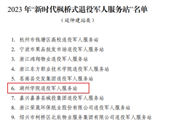 近日,浙江省退役军人事务厅公布2023年浙江省“新时代枫桥式退役军人服务站”名单,学校退役军人服务站荣列榜中。