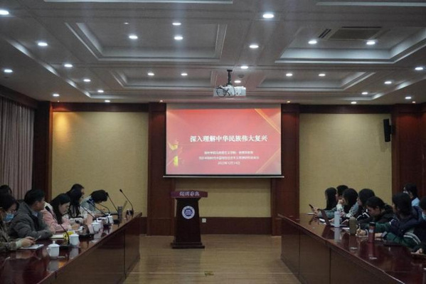 为深入学习贯彻党的二十大精神,深入理解中华民族伟大复兴,12月14日,习近平新时代中国特色社会主义思想研究会(以下简称研究会)在明知楼204开展以“深入理解中华民族伟大复兴”为主题的研讨会。马克思主义学院教授金建萍作专题讲座,研究会指导老师和全体会员参会。