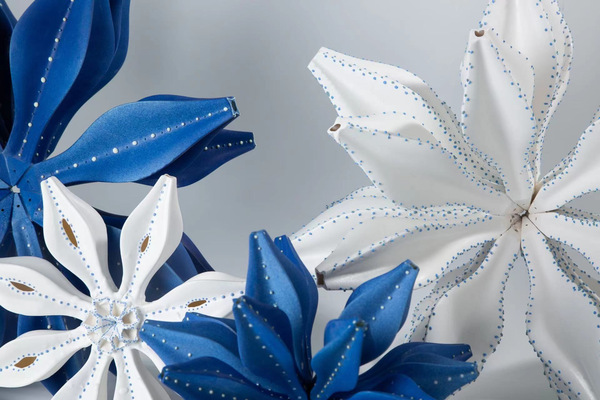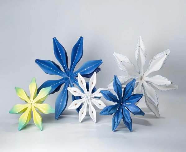 据靳开严老师介绍,其作品“绽放”象征着生命的各种形式,以雪花和花朵为灵感,对局部形状进行重组,使作品呈现出稳定的生命力。希望通过作品的自然形态和釉色,能让观众感受到强烈绽放的生命力和不同的风景。在技术上,运用3d打印技术,保证造型的准确性,打造立体、可触摸的作品,通过不同的组合展现生命的多样可能性。