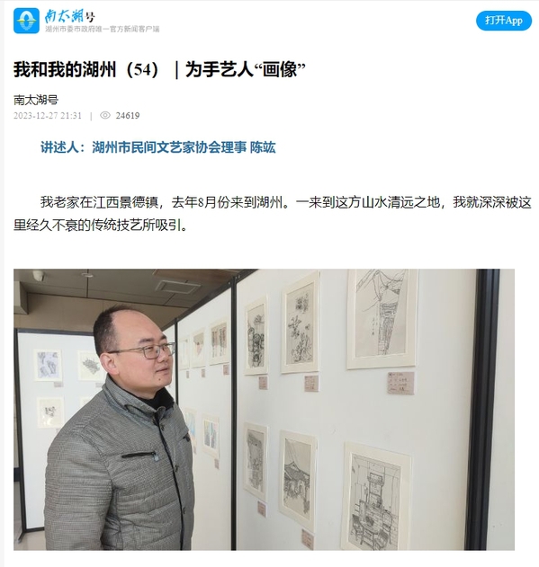 2023年12月27日南太湖号以《我和我的湖州(54)|为手艺人“画像”》为题报道必赢官网教师陈竑。