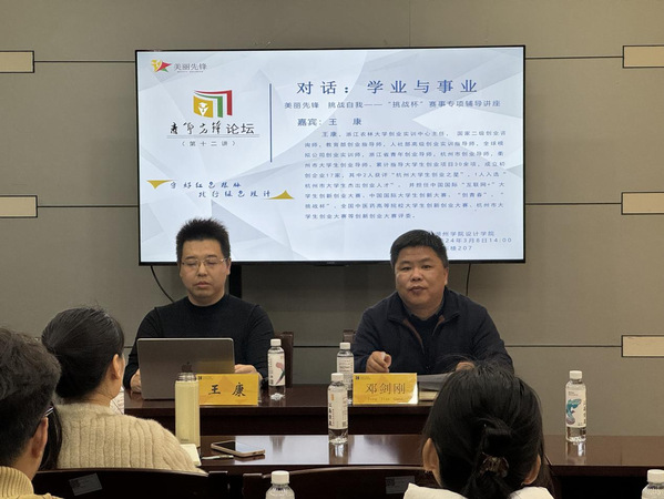 3月8日下午,设计学院举办了“青年先锋论坛”对话:学业与事业—挑战杯赛事专项辅导讲座,本次讲座邀请了浙江农林大学创业实训中心主任王康老师担任主讲嘉宾,设计学院副院长、党总支副书记及50余名师生代表参加了本次讲座。