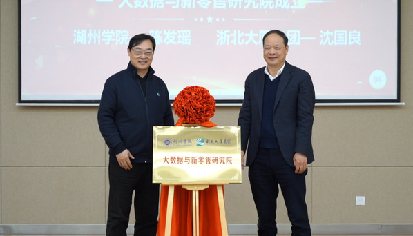 成立仪式上,沈国良和陈发瑶共同为大数据与新零售研究院揭牌,标志着校企合作新篇章正式开启。学校代表与浙北大厦集团代表共同签署了合作协议。
