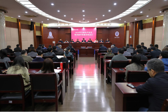 3月21日上午,学校召开2024年全面从严治党暨清廉学校建设推进会,回顾总结2023年工作,研究部署2024年全面从严治党和清廉学校建设工作任务。校党委书记金波出席会议并讲话,会议由校党委副书记、校长马志和主持,校纪委书记莫汝强作工作报告,校领导班子成员出席会议,全体中层干部、科级干部以及机关党务部门干部参加会议。