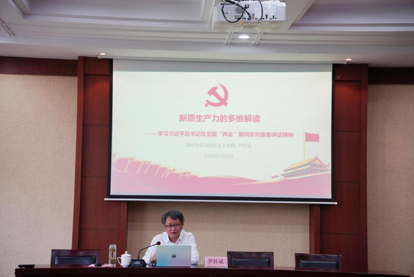 开班仪式结束后,学院党总支书记、院长主讲了第一次党课——《新质生产力的多维解读——学习习近平总书记在全国“两会”期间系列重要讲话精神》。尹怀斌从习近平总书记关于新质生产力的一系列重要论述、新质生产力的内涵解析和理解新质生产力的多维视角三方面,结合本土“新质生产力”生根、开花、结果的成效,生动阐释了“新质生产力”的科学内涵、理论价值和实践价值。