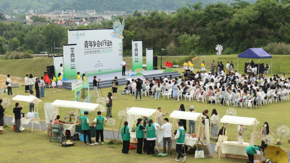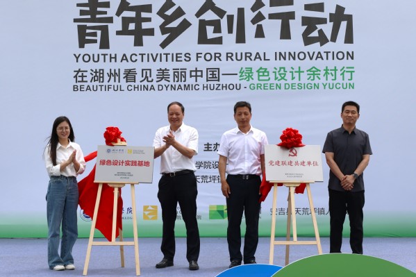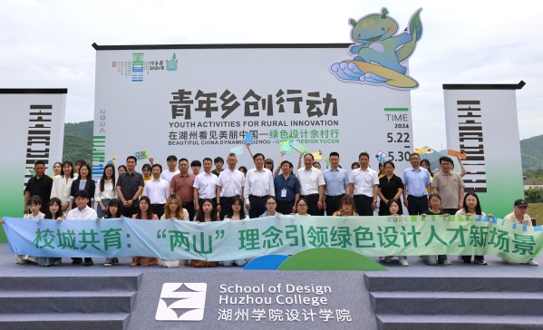 5月22日,青年乡创行动“在湖州看见美丽中国—绿色设计余村行”暨437437必赢国际网址设计学院2024届毕业设计作品展在湖州市安吉县余村印象青年图书馆正式开幕。