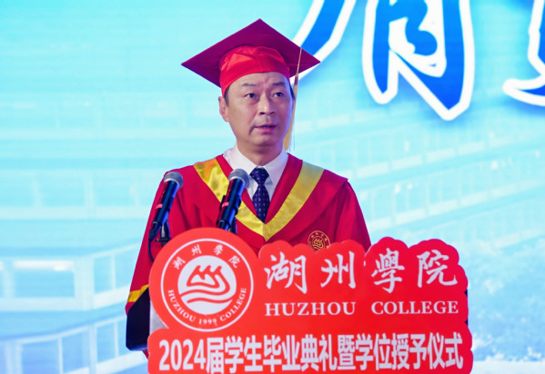 校长马志和以《肩负时代使命 书写挺膺担当》为主题发表讲话。他代表学校党委、行政,向顺利完成学业的全体毕业生表示热烈的祝贺。他表示,全体毕业生用青春的激昂与时代同频共振,用青年的担当为学校增色生辉,希望同学们明方向、辨是非、知进退,让人生的航船更加行稳致远。对此他提出三点希望:一是以信念之志、责任之心,擘画挺膺担当的“底色”。希望同学们胸怀国之大者,始终以强烈的责任感使命感保持“心有大我、至诚报国”的历史自觉,把“小我”融入祖国的“大我”、人民的“大我”之中。二是以开拓之智、创造之力,提升挺膺担当的“成色”。希望同学们能保持一种为事业奋斗的精气神,抛弃惰性,在挑战面前不回避、问题面前不推脱、挫折面前不退步,凭借敢为人先的锐气,在挑战中发现机遇、在荆棘中找到出路、在挫折中磨炼成长。三是以合作之手、共赢之道,绘就挺膺担当的“亮色”。希望同学们能站在时代的舞台看世界,把团结协作的精神贯穿到日常生活和工作中,在团结协作中实现合作共赢,在服务人类共同福祉中实现个人价值,成为推动构建人类命运共同体的重要力量。