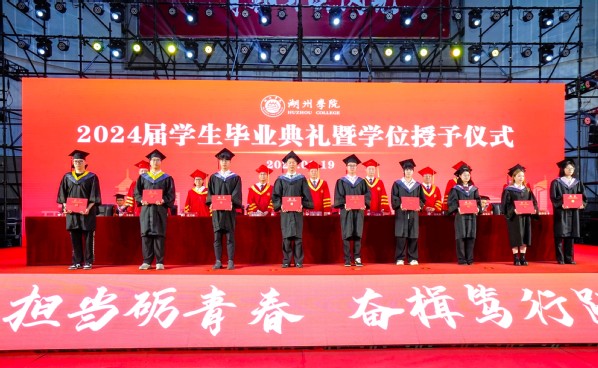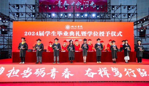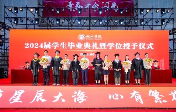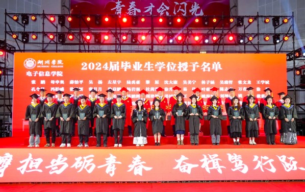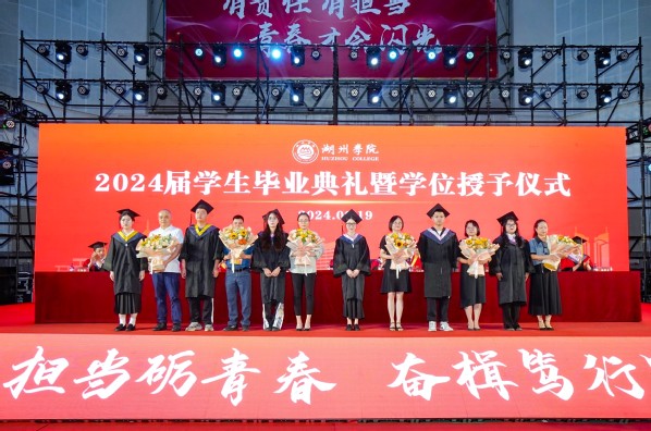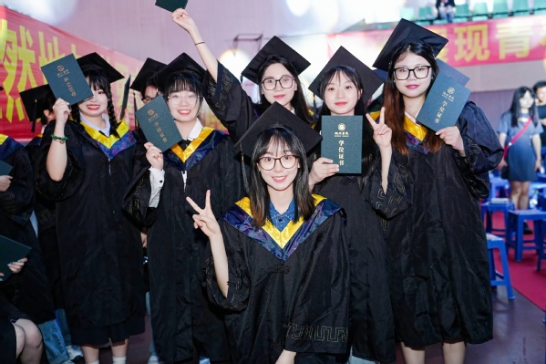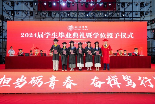 在随后进行的2024届毕业生学士学位授予仪式上,校领导为毕业生授予学位证书、拨穗并合影留念。