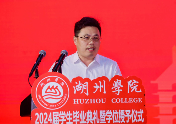 优秀校友代表2002级毕业生、长三角(湖州)智慧交通研究院副院长、湖州市交通科技发展有限公司董事长余明芳向学弟学妹们致以最衷心的祝贺,他希望大家毕业后带着母校的祝福和自己的梦想去创造自己的精彩人生。