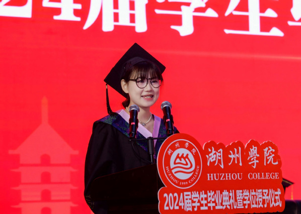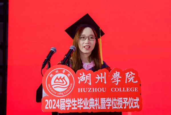 浙江省优秀毕业生、经济管理学院董李璐深情回顾了在湖院四年的学习与生活,表示未来将带着在大学期间收获的纯粹、坚定、真诚和炽热,到祖国和人民最需要我们的地方建功立业。