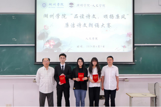 为深入学习贯彻习近平新时代中国特色社会主义思想、进一步学习贯彻党的二十大精神,弘扬中华优秀传统文化,推进清廉学校建设,营造崇廉尚洁的校园文化氛围,6月5日下午,人文学院成功举办“品读诗文,颂扬廉风”廉洁诗文朗诵大赛,纪委副书记、纪检监察室,学生工作部部长,人文学院党委书记、院长,生命健康学院党委副书记、纪委书记,人文学院党委副书记、纪委书记,湖州师范学院老师出席活动。