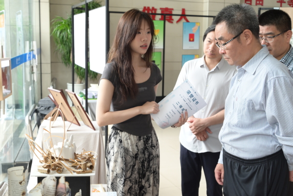 莫汝强对作品展的举办表示充分肯定。他指出,展览作品巧妙地将廉政理念、社会公德、法纪法规、乡村振兴等内容融入艺术作品中,彰显了廉洁文化在廉政建设中的浸润作用。希望设计学院做好“55°沐清廉先锋”廉洁文化品牌建设,将部分优秀作品转化为产品、商品,推动形成以清为美、以廉为荣的廉洁校园文化氛围。