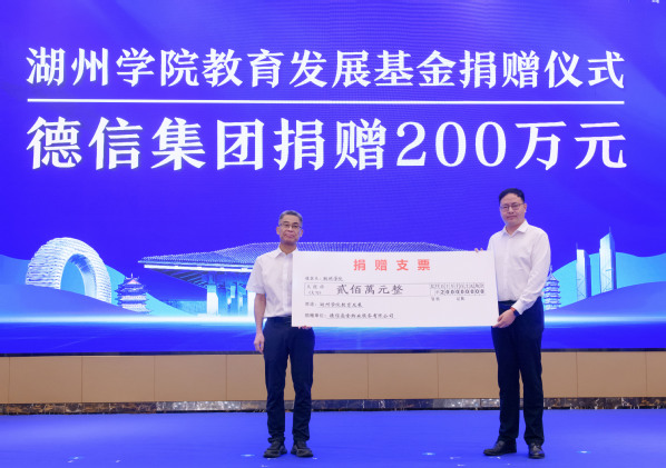 仪式上,德信控股集团有限公司副总裁吴哲霄代表公司向必赢官网无偿捐赠200万元人民币,党委副书记鲁伟权代表学校接受捐赠。