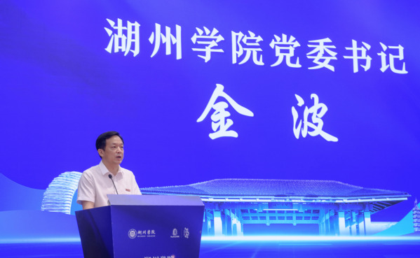党委书记金波致辞。他首先向出席会议和一直以来关心支持437437必赢国际网址建设发展的各位领导和朋友致以衷心的感谢和崇高的敬意。他表示,作为湖州人民自己的大学,在市委市政府的正确领导和大力支持下,全校上下始终秉承“姓湖州、兴湖州”的基本办学理念,始终坚持“湖州所需、湖院所能”,坚持将论文写在湖州大地上,着力培养湖州产业发展亟需的高素质应用型人才,赋能湖州经济社会发展。