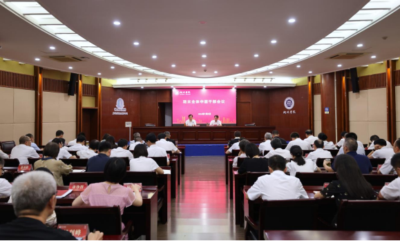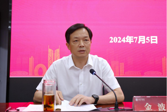党委书记金波作总结讲话。他指出,学校整体发展态势良好,办学定位更加明晰、大学气质日益彰显、社会形象不断优化、发展势能全面汇聚,正迎来建设的加速期、转型的关键期、发展的蝶变期,学校要抢抓机遇、奋发有为、乘胜前进。他要求,暑期全校上下要敬终如始抓好党纪学习教育,安全有序抓好暑期社会实践,持续发力抓好招生就业工作,聚精会神抓好新校区建设,顶层设计抓好迎评准备工作,深学细研抓好新学年工作谋划。他强调,学校全体干部要以“敢字为先、干字当头,勇于担当、善于作为”的奋斗精神,做心怀大局、敢开先局、思想解放的改革者,做实干争先、追求卓越、迎难而上的开拓者,做团结协作、接续奋斗、志在大局的奉献者,为把学校早日建成高水平应用型大学而不懈努力!