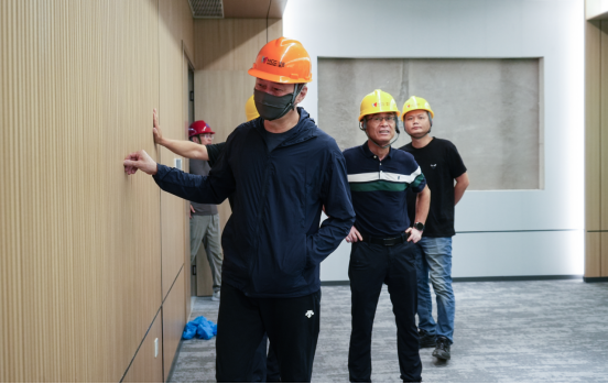马志和一行实地查看了新校区教室、会议室、办公室等精装修样板间的成品情况,对样板间目前取得的成果表示肯定,同时对样板间的用材、工艺、质量等提出四点要求,一是严格把关品牌材料,按照品牌清单现场实施;二是整体设计要符合学院气质和风格,做到美观大方;三是施工质量安全可靠,注重细节,严防质量问题和返工情况;四是各参建方要协调一致,做好施工监管与成品保护。