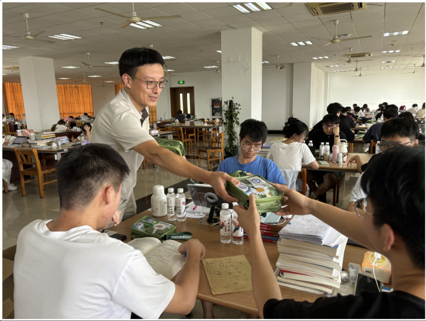 智能制造学院为留校学生分发矿泉水、清凉大礼包等慰问礼品,希望学生们能在炎炎夏日,安心静心用心备考。在场的学生纷纷表示,一定会持之以恒,以优异的成绩回报学院以及老师对自己的关心和期许。