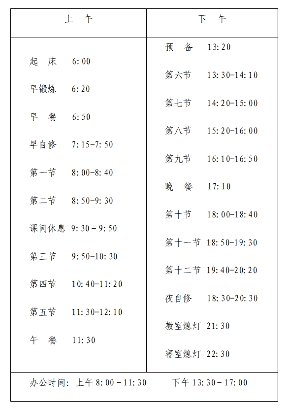 自10月8日(星期二)开始实行冬季作息时间表,请各单位遵照执行。