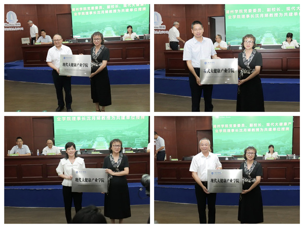 会议选举产生了新的理事会成员,沈月娣当选为现代大健康产业学院理事长。会议听取了产业学院筹备工作报告,确立了学院的章程和运行管理机构,审议通过了下一步的工作计划,并为现代大健康产业学院产业教授、实践导师、创业导师和兼职教师代表颁发聘书。沈月娣为湖州市妇幼保健院、437437必赢国际网址附属南太湖医院、437437必赢国际网址附属浙北明州医院、湖州市社会福利中心发展有限公司等四家共建单位授牌。