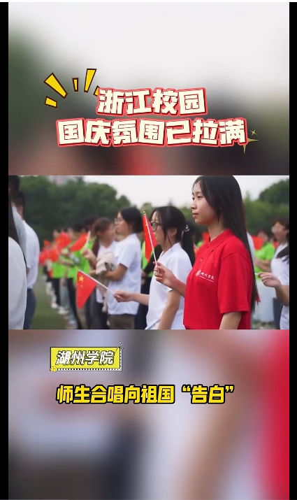 2024年10月1日教育之江以《浙江校园国庆氛围已拉满,快来看看师生们祝福祖国的N种方式》为题报道必赢官网举行庆祝新中国成立75周年升旗仪式。