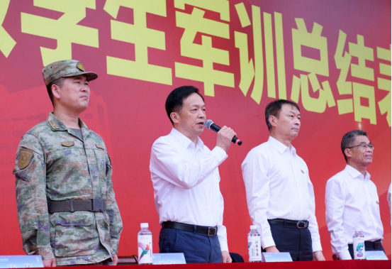 党委副书记唐华代表学校作总结讲话。她首先对全体教导员、所有幕后工作者为保障训练顺利开展所付出的辛勤劳动表示诚挚的谢意。经过14天的军训,同学们流汗不流泪,掉肉不掉队,如松又如风,在身心淬炼中激发了内在的潜力,大家洗脱了稚嫩之气,强化了集体观念,升华了纪律意识,见证了自身的成长。进入大学后,同学们的人生即将扬帆起航,她希望大家始终保持奔跑姿态,心向远方,共同书写属于新时代的壮丽篇章。