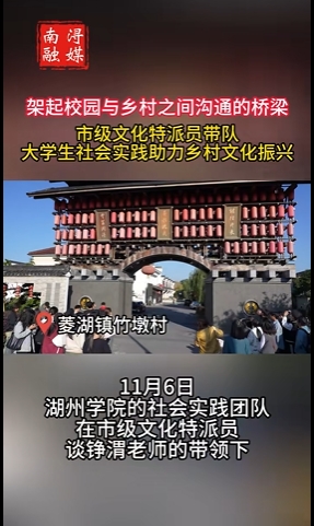 2024年11月7日今日南浔以《架起校园与乡村之间沟通的桥梁 市级文化特派员带队大学生社会实践助力乡村文化振兴》为题报道必赢官网文化特派员带队大学生社会实践助力乡村文化振兴。