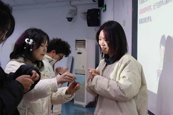 王慧春以一场别开生面的“正话反说”游戏互动开始,台上同学巧妙运用反义词汇描述成语,由台下同学猜测,以此让同学们认识到合理有效沟通的重要性。紧接着,以生活中常见的几个情景模拟引出“非暴力沟通”的四个关键要素,包括观察、感受、需要、请求,运用案例分析与现场互动相结合的方式,帮助同学们掌握理解这一高效沟通方法,并指导大家掌握实现非暴力沟通的具体技巧。