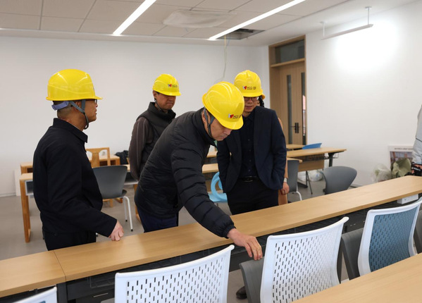 马校长在建设现场指出,要强化管理体系和整体统筹,稳步推进新校园高水平、高标准、高质量建设。他强调,全体建设者要进一步提高思想认识,强化责任担当,始终保持干事创业的激情,把责任感和使命感落实在行动上,强化现场管理,科学组织施工,做好成品保护,严防返工翻工。要进一步对照建设标准,明确质量要求,在保障进度的前提下做好质量管控措施,切实保障新校园按时交付使用。