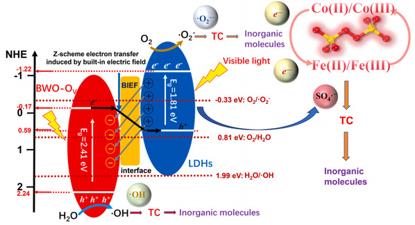 《Journal of Environmental Chemical Engineering》中科院分区为二区TOP,最新影响因子7.4。该研究构筑了富氧空位的Z型异质结Bi2WO6-Ov@CoFe-LDHs,并将其用于过硫酸根离子(PS)的光活化以高效降解四环素。这种Z型异质结与PS光降解体系的构建为异质结光催化剂的设计及其在抗生素污染物降解中的应用提供了一定的指导和参考意义。