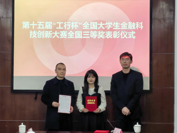 会上,院党委书记、院长与沈俊毅共同为获奖同学经济与金融2201班李文棱颁发了证书。沈俊毅代表工商银行湖州分行赠送了感谢信,感谢必赢官网及我院师生对此次比赛的辛勤付出和长久以来的坚定支持。“工行杯”全国大学生金融科技创新大赛自11月启动以来,吸引了全国6万余名学子积极报名,提交的有效作品数量达到1.5万余份,报名人数和作品数量均创下历史新高。
