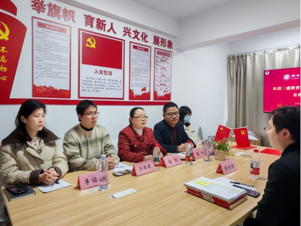 为深入贯彻落实国家、省和学校对毕业生就业工作的指示精神,进一步加强校企合作,促进我院学生高质量就业,2025年3月12日上午,三盛教育科技(浙江)有限公司到访人文学院,双方就举办职业规划与就业指导讲座、企业宣讲招聘等展开深入交流。三盛教育科技(浙江)有限公司湖州区域经理黄佳栋,人文学院党委副书记、纪委书记,学工办副主任、就业辅导员,团学负责人,学生第三支部书记、副书记参加座谈。
