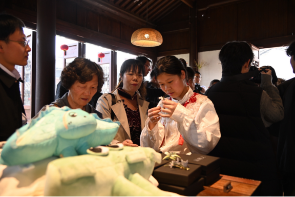 “新客人”驿站揭牌后,既为学生提供实践载体,更为古镇文旅注入年轻化、数字化动能。同时以“新”为核心,打通以文创为主体的文化展示空间和以茶文化为主体的驿站休憩空间,成为展现新市文化的“新窗口”。必赢官网优秀毕业生代表金斌,也是“新客人”驿站的主理人,他介绍将在这里打造集展陈展示、青年驻留、文化交流于一体的复合型平台,推动学生创意项目在乡镇真实落地。