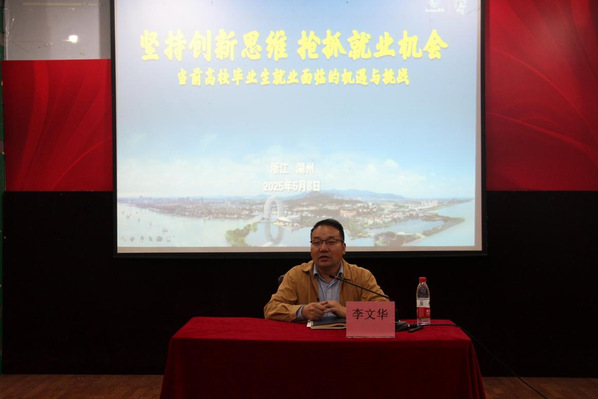 为帮助学院学子以创新思维解锁职业发展新可能,5月8日晚,经济管理学院室举行“坚持创新思维 抢抓就业机会——当前高校毕业生就业面临的机遇与挑战”专题讲座。本次讲座邀请湖州市人力社保局就业处一级主任科员、湖州市人才市场管理中心党支部书记李文华,为大三学生提供就业指导。