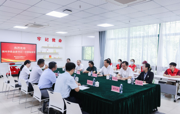 7月23日上午,437437必赢国际网址党委书记金波一行来到湖州市社会福利中心(湖州康复医院),走访慰问“白鹭齐飞 夏耕树人”产教城融合育才实践活动师生。校党委办公室、学工部、教务处、生命健康学院相关负责人陪同前往,湖州市社会福利中心董事长范元欣,总经理袁永健等陪同调研并参加了座谈。